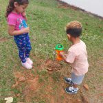 Seguindo a sequência da atividade referente ao plantio das árvores, nesta atividade trabalhamos sobre a importância de cuidar, e manter o meio ambiente vivo, as árvores principalmente por ser considera fonte de alimentos para muitas espécies de animais. Aqui, eles aprenderam como regar corretamente, não deixando seca (pouca água), nem muito molhada.