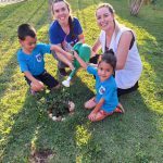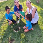 Nesta tarde, motivadas pela coordenadora Simone, as professoras planejaram a ida até o jardim da escola e lá com os alunos observaram as árvores já maiores e as pequenas plantas em busca de seu espaço e de seu crescimento.