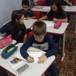 Ao chegarmos na Escola, foi discutido sobre tudo o que observarmos e em seguida os alunos finalizaram com uma atividade de registro através de desenho sobre tudo o que aprenderam.