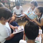 Através da revistinha do Zé Quest, nós professoras dos primeiros anos, fizemos a leitura da história e pedimos para que os alunos nos dissessem o que consideram mais importante nos cuidados com o meio ambiente. Após ouvir todos os alunos, entregamos as revistinhas e fizemos uma roda para que eles pudessem visualizar a história.