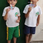 Durante a semana do Trânsito, outro tema destacado no 1°ano, foi a bicicleta, já que muitas crianças vem para escola ou lazer este meio de transporte. Explanou- se sobre os cuidados no trânsito, o uso de equipamentos de segurança, andar na beira da calçada e acompanhado de um adulto. Em seguida, pintaram, recortaram e montaram o balancinho do pedal.