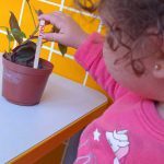 Cada criança plantou uma muda de Tradescantia zebrina (lambari zebrada) e cuidou dela aguando até o momento de presentear as mães, quando as plantas já tinham atingido um tamanho ideal
