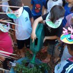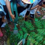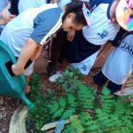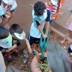 Em seguida, limpamos e preparamos um lugar em nossa escola e juntos plantamos e colocamos água em algumas flores.