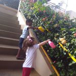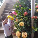 Logo após, as crianças foram cuidar e regar as plantas do nosso jardim. Conversamos que será uma prática, durante o ano.