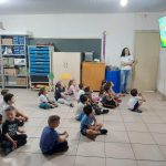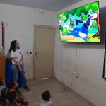 Apresentou-se as crianças dois vídeos acerca do meio ambiente, e situações que fazem bem e mal ao mesmo. Posteriormente, apresentou-se duas cenas: um rio sujo e um rio limpo, para que as crianças identificassem como a ação humana interfere no meio em que vivemos. As crianças foram questionadas sobre as consequências de não cuidarmos do meio, e se expressaram muito bem. Em outro momento registraram a atividade, destacando atitudes benéficas ao meio ambiente.