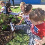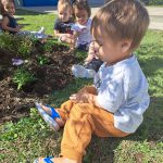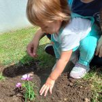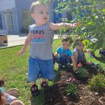 Após as flores estarem plantadas, orientar as crianças para que reguem as flores para que cresçam e floresçam, enfatizando que as flores fazem parte da natureza e necessitam de muito cuidado.