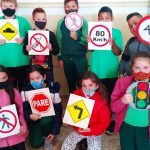 Também circulou entre os grupos as placas para que a escola recebeu da Arteris com a tarefa de pesquisarem o seu significado e apresentarem aos demais grupos.