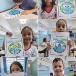 Após conversa sobre o Dia do Meio Ambiente, a importância de cuidar do nosso planeta. Não devemos jogar lixo nas ruas, nos rios, pois o nosso mundo vai ficando cada vez mais poluído. As crianças receberam uma folha com desenho do planeta e legenda numérica: 1 para azul (oceanos) e 2 para verde (continentes). Elas pintaram de acordo com a legenda, reforçando a associação entre números, cores e elementos naturais. Além disso, desenvolveram coordenação motora fina e atenção às instruções.