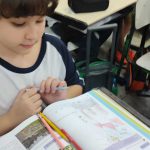 Os alunos do 3º ano C realizaram uma atividade no livro didático na qual refletiram sobre o descarte correto e incorreto do lixo e os impactos causados nos diferentes ambientes. Durante o estudo, observaram imagens que ilustravam as consequências do acúmulo de resíduos na natureza e discutiram sobre a importância de manter os espaços limpos para garantir a saúde das pessoas, dos animais e do planeta.