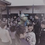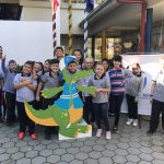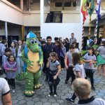 O mascote Fritz, apareceu na escola durante o recreio, onde os alunos puderam vivenciar um pouco da história que conheceram e aproveitaram para tirar fotos.
