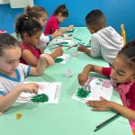 • Cada criança fará uma árvore usando cotonetes para preencher a copa com pontos coloridos.