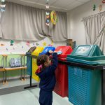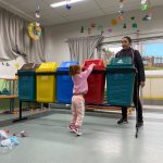 Atividade realizada com o maternal 1, na qual aprenderam a separação dos lixos em suas devidas lixeiras ( lixo orgânico, metal, papel, plástico e vidro). Onde através da brincadeira as crianças aprenderam a importância de jogar o lixo no lugar certo, para assim cuidar e preservar nosso meio ambiente.
