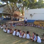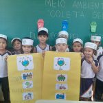 E para Desenvolver ações referentes aos cuidados com o destinação correta do lixo, a fim de contribuir com a preservação do meio ambiente pintamos, em roda de conversa explicamos o que significa os três R: Reciclar, Reutilizar, Reduzir e para finalizar os alunos pintaram e ligaram cada lixo de acordo com a cor da lixeira.