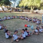 Por meio do nosso Globo Terrestre os alunos puderam explorar e conhecer como nosso Planeta é formado por água e terra.