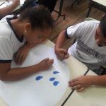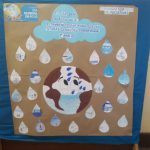 Os alunos confeccionaram gotas de água para serem entregue na passeata e também montaram um painel afixado na entrada da unidade escolar, para abranger um maior número de pessoas.