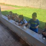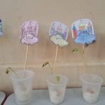 A partir da história “João e o Pé de Feijão”, as crianças foram estimuladas a pensar sobre a importância de cuidar das plantas, acompanhando o plantio e desenvolvimento de feijões. A atividade iniciou-se com o plantio dos grãos em potes com algodão e água, e durante 10 dias os alunos acompanharam o crescimento das plantas, regando e posicionando-as próximas a fontes de luz, para acelerar seu crescimento. Ao final, em roda de conversa, verificamos que algumas plantinhas não tinham crescido, pois não tinham sido cuidadas .