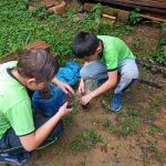 Foi solicitado aos alunos para que trouxessem mudas de suas casas, e em seguida iniciado o plantio.