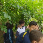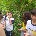 Após uma roda de conversa sobre os benefícios que a natureza nos oferece, os alunos do 4° ano foram degustar algumas amoras vermelhinhas e docinhas do pomar da escola, onde também pudemos observar outras árvores frutíferas como a bananeira com cacho de banana e aceroleira com flores.