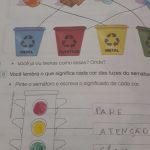 A atividade proposta foi feita em duas partes, a primeira os alunos fariam a leitura do novo gibi da Turma do Zé Quest, na aula de Língua Portuguesa e partiríamos para a aula de geografia onde também trabalhou-se as cores do semáforo e as cores para a reciclagem do lixo.