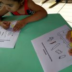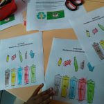 TEXTO: A professora mediante  a roda da conversa, apresentou para os alunos um cartaz representativo sobre “Coleta Seletiva de Lixo- As Lixeiras de Reciclagem- Reciclar é Vida” e posteriormente falou sobre as mesmas, fazendo uma conjunção entre as cores e os objetos representativos. Posteriormente os discentes coloriram as lixeiras com as cores corretas e ligaram os objetos nas lixeiras certas, com auxílio da docente, que explicou o porquê das cores das mesmas, orientando que de acordo com as Normas Mundiais da Coleta Seletiva de Lixo, procede assim: Coletor amarelo – metal; Coletor azul – papel; Coletor vermelho- plástico; Coletor Verde– vidro e Coletor Marrom- orgânico, ênfase nas cores primárias e secundárias. E consequentemente a  importância de vivermos e convivermos num ambiente limpo e responsável,  finalizando a atividade.