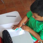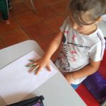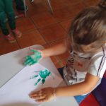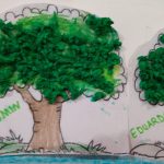 Também organizamos a pintura da mão com tinta guache para que cada um fizesse a sua árvore como símbolo de que realizou um tipo de reflexão sobre o meio ambiente e a importância das árvores para o equilíbrio do planeta Terra.