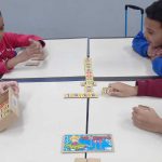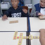 Para consolidar a aprendizagem, realizamos uma atividade lúdica com o dominó das placas de trânsito, no qual os alunos precisavam associar corretamente as placas iguais, nomeá-las e dizer onde costumam vê-las. A dinâmica envolveu raciocínio lógico, reconhecimento visual, respeito às regras do jogo e cooperação entre os colegas.