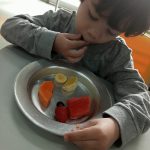Identificação e exploração de frutas: Apresentar diferentes tipos de frutas, suas cores, texturas e sabores, por meio de atividades como a criação de um jogo de memória com frutas, ou uma roda de conversa para conhecer a origem e os benefícios das frutas.