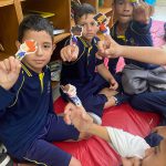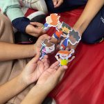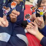 Os estudantes tiveram a oportunidade de conhecer detalhadamente os personagens do projeto Arteris, aprofundando seu entendimento sobre cada um deles. Além disso, participaram de uma atividade criativa na qual confeccionaram dedoches, utilizando-os como instrumentos para desenvolver e encenar histórias originais, promovendo assim o estímulo à imaginação e à expressão artística.