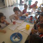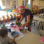 A professora Edilene em parceria com a professora Alessandra, promoveram uma degustação de rúcula com seus alunos, mais o detalhe e que os próprios alunos plantaram as mesmas, e participaram no processo e cuidado com essas hortaliças, no final desse processo as crianças colheram e depois observaram o processo de limpeza e depois degustaram, e eles amaram todo o processo, além do mais tornamos nossos alunos multiplicadores de boas práticas ambientais.