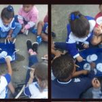 Passeamos pelo pátio,  recolhemos possíveis lixos, orientamos sobre os cuidados para eliminar os criadouros, distribuímos panfletos informativos.