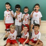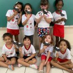 | Assistimos ao vídeo Ciclo do Aedes Aegypti, conversamos com as crianças sobre como ocorre a infecção, como prevenir e cuidar da pessoa com dengue, confeccionamos os mosquitos com materiais recicláveis. Fizemos uma viseira, as crianças pintaram e brincaram de ser super heróis protegendo o meio ambiente contra o mosquito da dengue.
