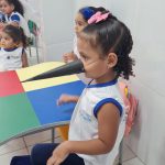 Ainda com as crianças sentadas na rodinha para a contação da história “o que aconteceu? A baratinha adoeceu…uma história que enfatiza a dengue, mostra os possíveis criadouros do mosquito, a forma de transmissão e as principais medida de prevenção. Contamos a história e na sequência, realizamos a interpretação oral através de algumas perguntas e informamos aos alunos que não podemos deixar latas, copos descartáveis, garrafas abertas, pneus, tampinhas, vasos de plantas com pratinhos debaixo, entre outros recipientes que podem se tornar criadouros do mosquito da dengue, porque é isso acontece quando o mosquito encontra água limpa e parada.