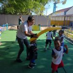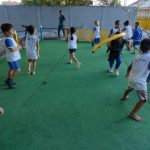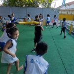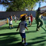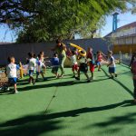 E para finalizar realizarei a brincadeira pique cola do mosquitão – uma criança será escolhida aleatoriamente e enfeitada para ser o mosquitão. Ao sinal da professora todos os demais alunos deverão correr do mosquitão pelo pátio, que por sua vez tentará tocá-los. As crianças que forem tocadas deverão aguardar sentadas até o mosquitão terminar de colar todos. O próximo mosquitão, será a última criança que for colada.