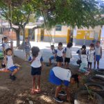 Depois realizaremos a brincadeira detetive do mosquito – a professora levará os alunos para fazer um passeio pela escola, para procurarem possíveis focos do mosquito da dengue, recolherem e descartarem adequadamente.