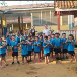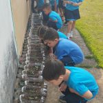 Depois do plantar vem o cuidar, neste dia as duas turmas se reuniram e levaram os vasos a um novo espaço na escola, agora o local é mais acessível e todos podem apreciar o crescimento do girassol.
