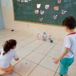 Foi confeccionado um jogo de boliche com garrafas descartáveis junto com as crianças, e colado imagens do mosquito da dengue nas garrafas e o jogo montado em sala de aula, em seguida os alunos brincaram com o jogo de boliche, ganhava o jogo a criança que conseguia derrubar a garrafa com o mosquito, os pequenos amaram a brincadeira e se divertiram muito.