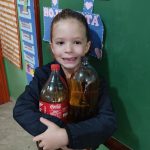 A princípio somente 22 alunos da turma do Pré-II-vespertino foi inserida no projeto, mas devido a parceria e o apoio da direção e da equipe escolar, todas as turmas foram envolvidas, totalizando 152 alunos distribuídos em 7 turmas. Aproveitando o tema “Profissões”, iniciamos com uma roda de conversa a discussão com o nome do profissional cuja função é recolher o lixo da nossa casa e da escola e qual o destino do lixo em nosso município e se existem outras maneiras de coleta. Chegou-se ao significado e a importância da reciclagem, da reutilização de materiais e da redução do lixo. Comentou-se sobre os 5Rs que ajudam no cuidado com o meio ambiente e o que devemos fazer para transformá-los em ações. Assistimos a vídeos relacionados com os temas abordados e os alunos realizaram atividades impressas sobre as cores das lixeiras e o correto descarte dos materiais correspondentes. Escolhemos uma das formas de reciclagem: A coleta do óleo de cozinha.