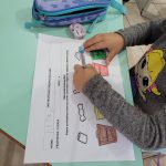 Então, realizamos uma atividade sobre o descarte correto do lixo e as cores das lixeiras.
