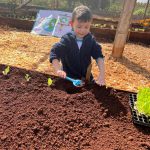 Foi realizada uma atividade na horta onde os alunos tiveram o contato direto com a terra, explorando suas texturas e descobrindo sua importância para o crescimento das plantas. Durante a vivência, realizaram o plantio do alface, cuidaram com dedicação e acompanharam seu desenvolvimento até o momento da colheita. Por fim, levaram o alface para a casa, vivenciando a alegria de degustar um alimento saudável cultivado por eles mesmos com muito carinho.