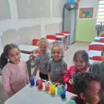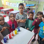 As crianças do G4 fizeram uma divertida experiência com as cores. Bem-vindos às mistucores, uma seleção de brincadeiras e interações com tons e cores. Uma atividade que possibilita a criação de um clima mágico e divertido, propício para muitas descobertas e investigações. Dessa forma, os estudantes poderão descobrir as cores do semáforo e brincar ludicamente com eles.