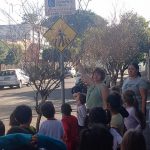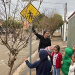 Depois da conversa as crianças foram com a professora fazer uma caminhada nas proximidades da escola  para observar as placas de trânsito e sinalização de pedestre.