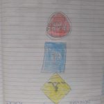 Ao retornar para a sala de aula, as crianças conversaram sobre o que viram na rua e desenharam as placas observadas.