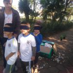 Explorar os sentidos com os olhos vendados , através da trilha sensorial.