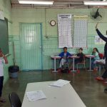 Durante a explicação das atividades, também foi trabalhada as direções (direita/esquerda; frente/trás), auxiliando na assimilação desses conceitos na relação entre corpo e espaço.