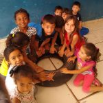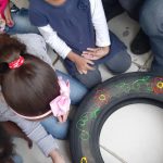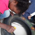 Iniciamos com roda de conversa e vídeos sobre o reaproveitamento de pneus. Após selecionamos alguns pneus e utilizando cola colorida… Desenhamos nos pneus para posteriormente serem utilizados como jardim suspenso.