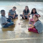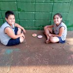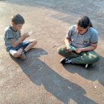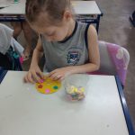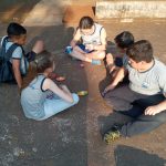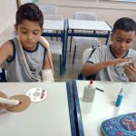 Foi disponibilizado retalhos de papel, tampinha e bola de gude e cada aluno confeccionou o seu brinquedo.