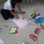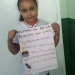 A professora do quarto ano trabalhou com os alunos o destino e produção de lixo, realizando roda conversa, assistiram vídeos e reportagens sobre o assunto, produziram cartazes e apresentaram para os colegas seus trabalhos e suas conclusões.