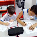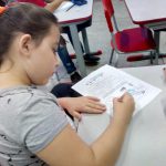 Em uma aula de Língua Portuguesa os alunos da E.M.E.B.Professora Conceição Collaço do 4º ano A da professora Silvia da Guia Corrêa Ferreira realizaram uma atividade de leitura e escrita sobre os deveres dos pedestres. Foi explorado oralmente os conhecimentos prévios dos alunos e após realizaram o registro por escrito numa folha a parte onde teriam que realizar a leitura das frases e completar com as palavras adequadas.A professora realizou intervenções com aqueles alunos com maiores dificuldades. Quando terminaram foi socializado as respostas e do conteúdo assimilado.
