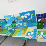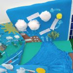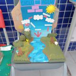 Para consolidar o aprendizado, os alunos desenvolveram uma maquete representando o ciclo da água e os estados físicos que a água pode assumir (líquido, sólido e gasoso). Através da maquete, puderam visualizar de forma concreta as etapas do ciclo da água e compreender melhor como funciona esse processo essencial para a vida na Terra.