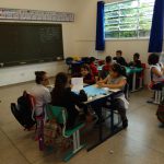 Atividade realizada com os alunos do 5°ano A, abordando o Dia da Água, trabalhamos a preservação e sua importância. Os alunos se reuniram em grupos para confecção de cartazes, onde discutiram e fizeram a exposição dos mesmos.